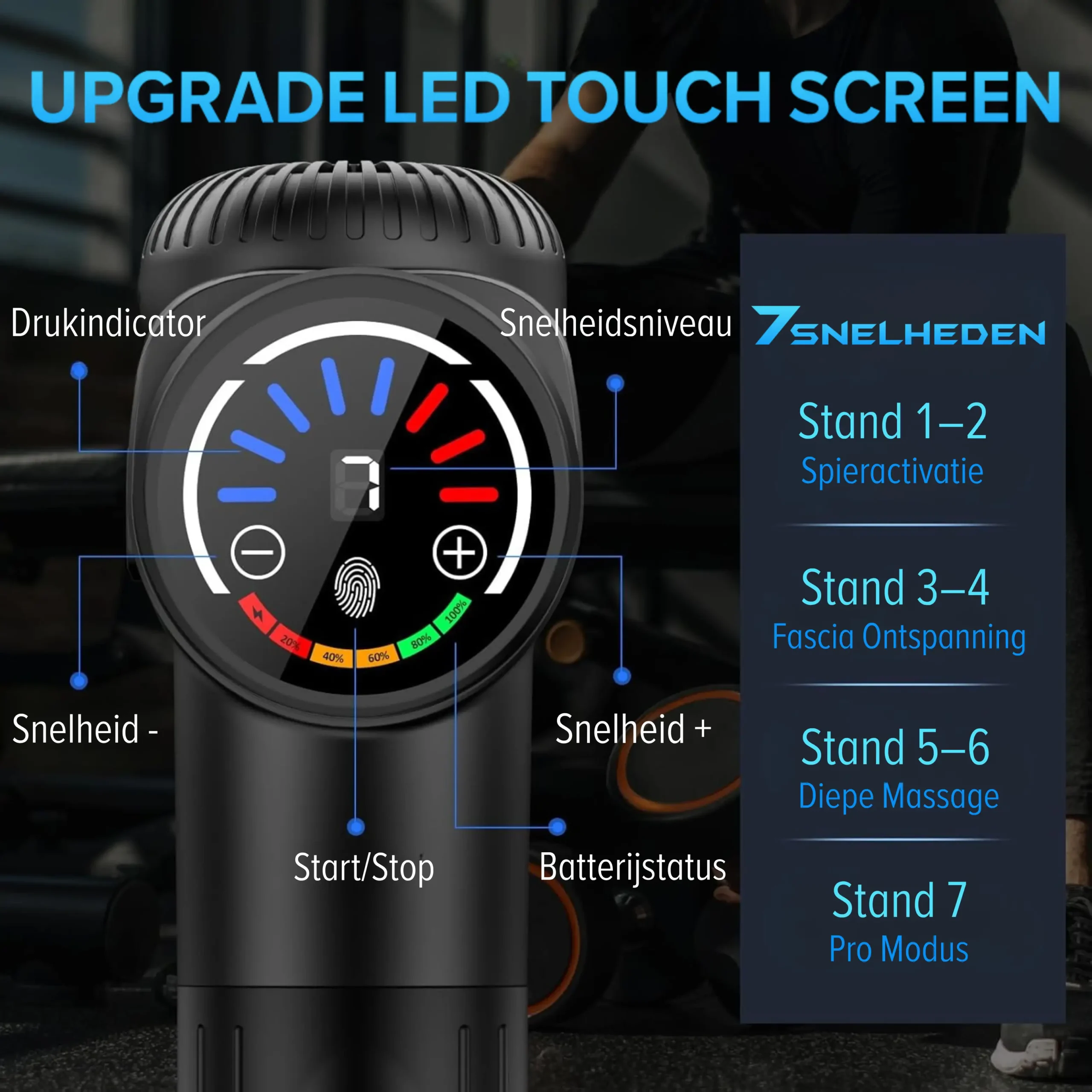 Onze massage gun onderscheidt zich door geoptimaliseerde RPM’s, kracht tegen blokkeren en een robuuste motor, wat zorgt voor topprestaties zonder de hoge kosten van luxere modellen. Het biedt de beste prijs-kwaliteitverhouding en is een slimme keuze voor vrijwel iedereen!